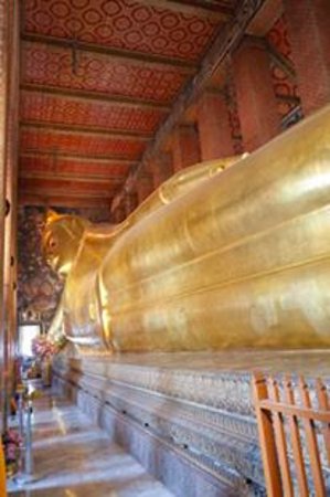 バンコクへ来たら、絶対に行くであろう場所ですね。中に入ると黄金のブッダが寝転んでます。足の裏もいろいろな意味があり、素晴らしいので是非みてください。短いスカートなどの露出が激しい服は控えるようにしてくださいね。暑いので、水分補給もしっかりしてください。