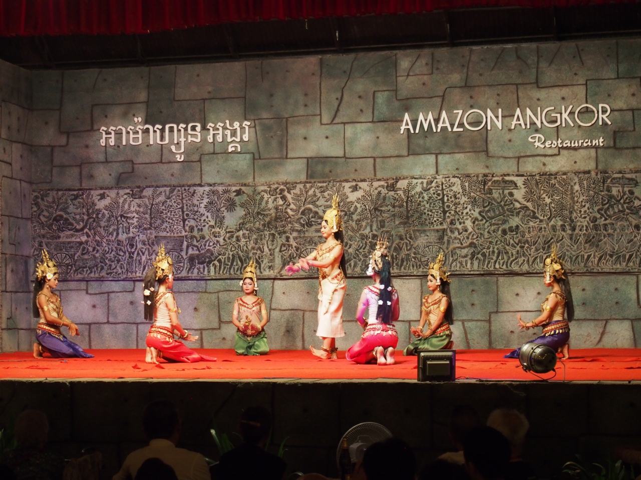 アジアビュッフェとともにアプサラダンスが楽しめる店です。レストランは体育館のように広い会場で大勢の人が楽しんでいます。ビュッフェはカンボジア、ベトナム、タイなどいろいろの料理が食べれます。ダンスは1時間ほどですが、少し間延びした感じもありました。