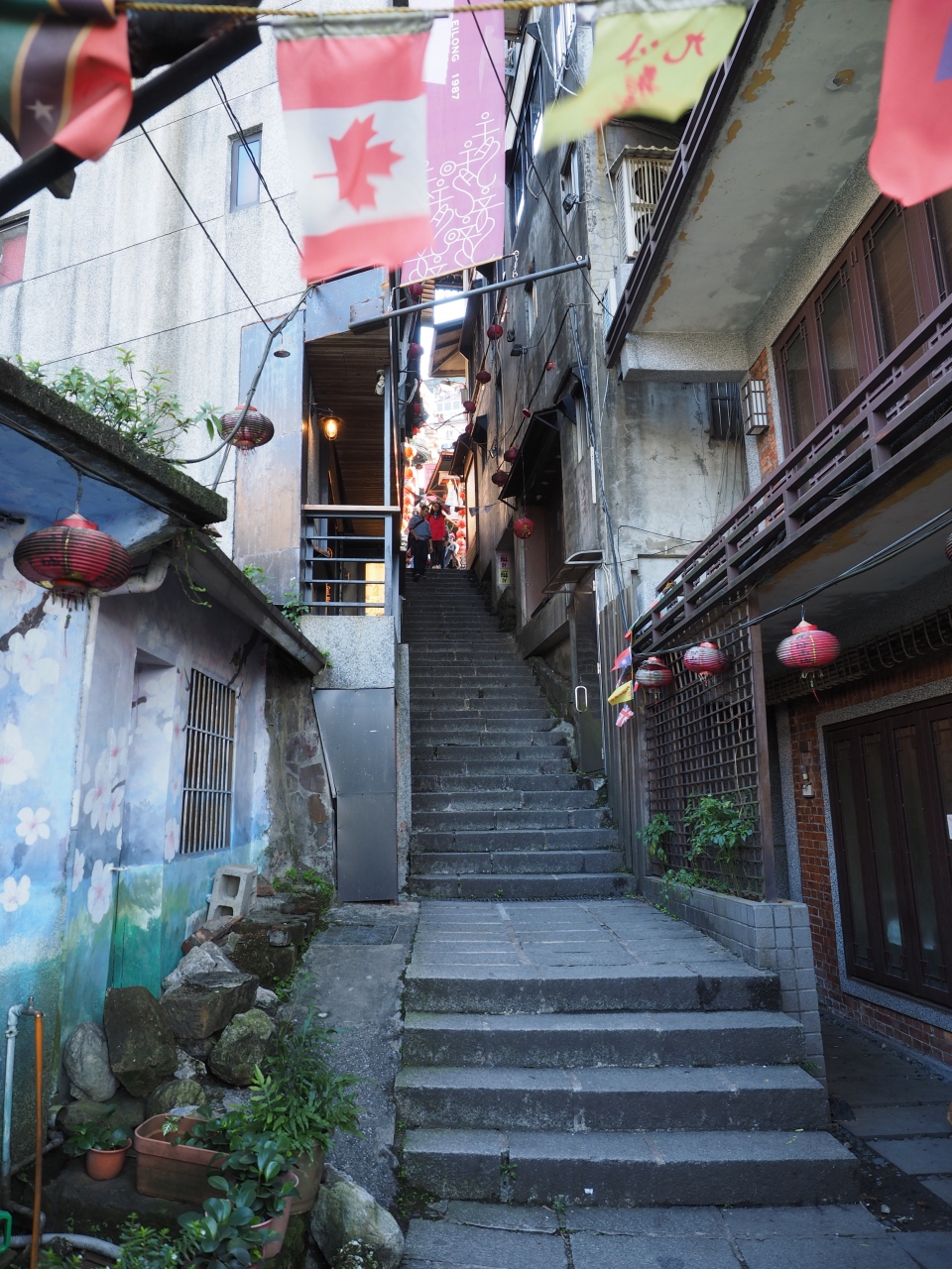 赤い提灯の九份といえばこの通りです。日没後、提灯が灯ったここの景色は幻想的でとても素敵です。