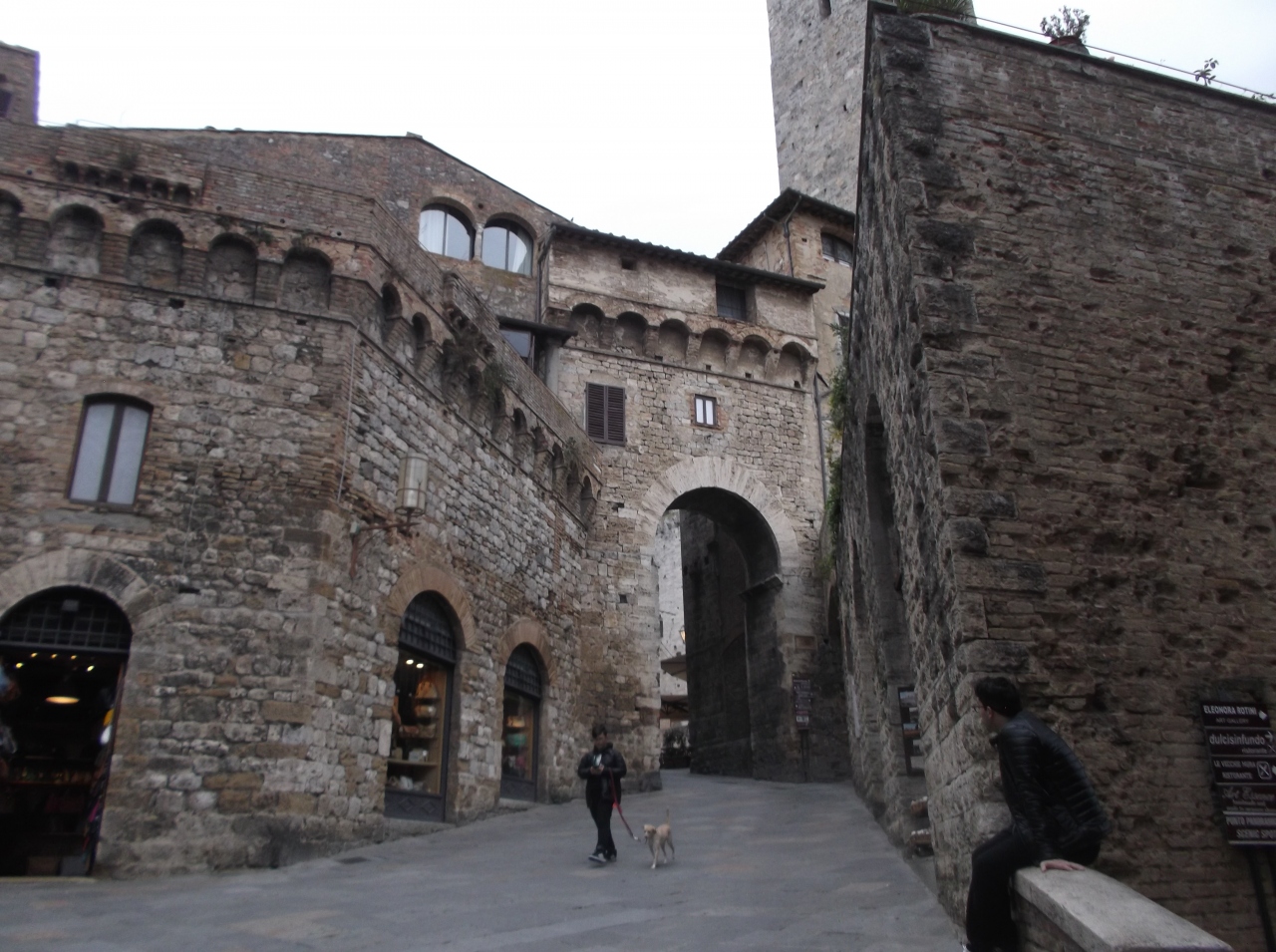 サンジミニャーノの旧市街の入り口は、13世紀初頭に築かれた城壁にある「サン・ジョバンニ門」です。 ここから旧市街に入り、サンジョバンニ通りを上っていくと、この門が現われます。