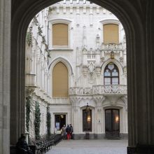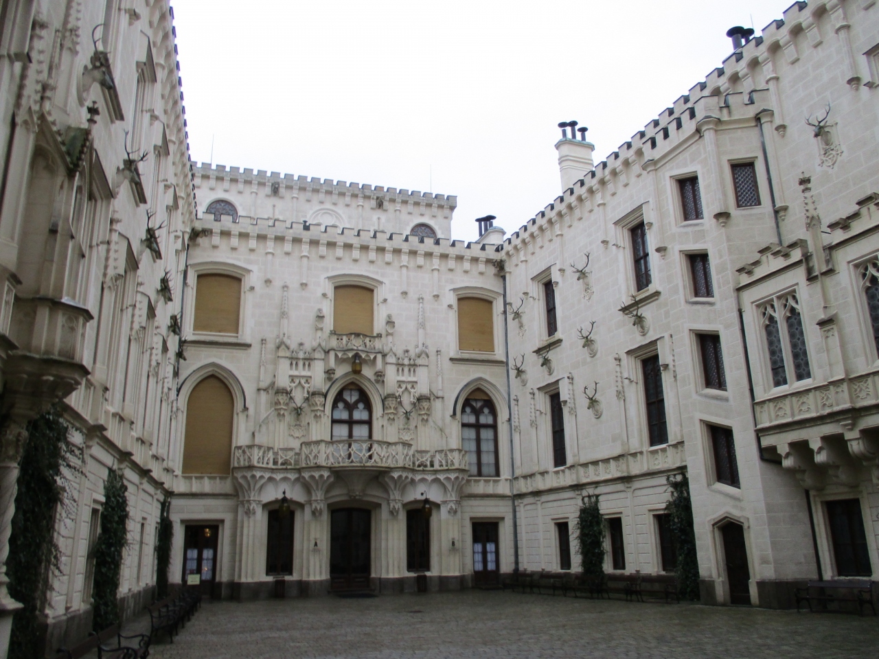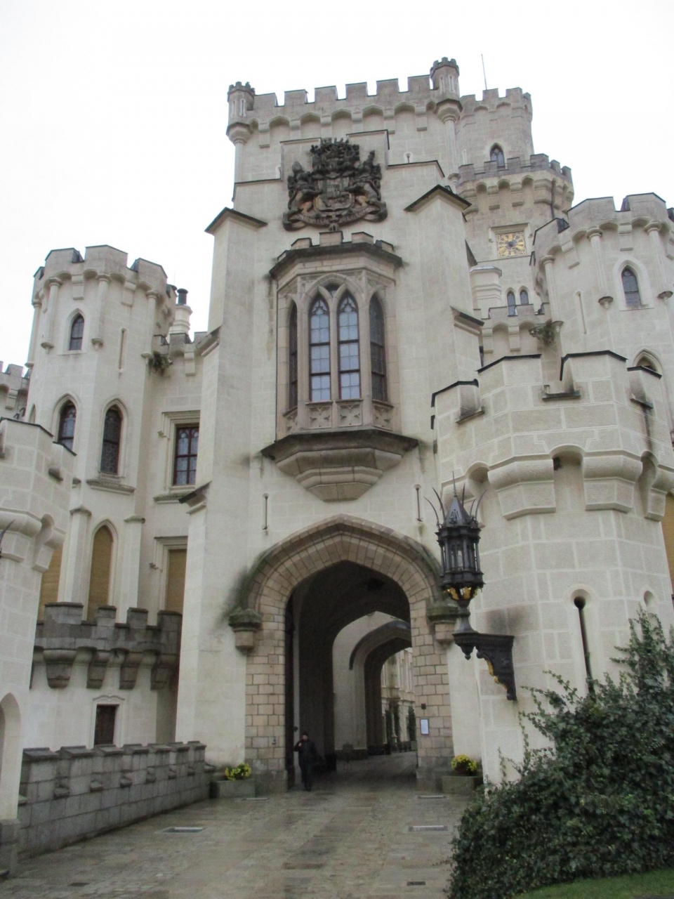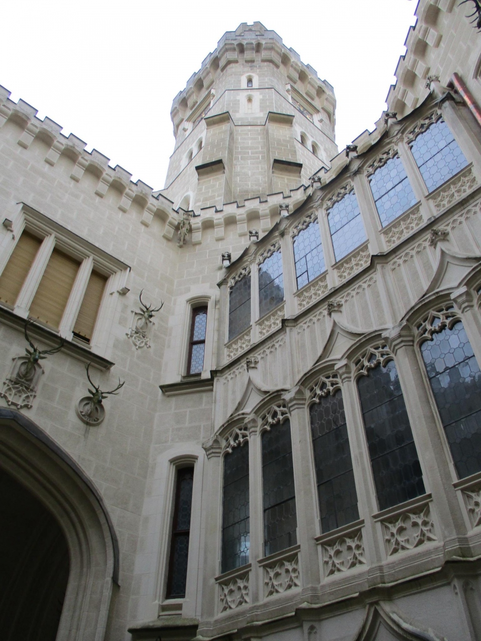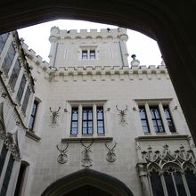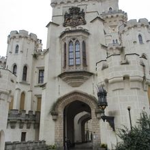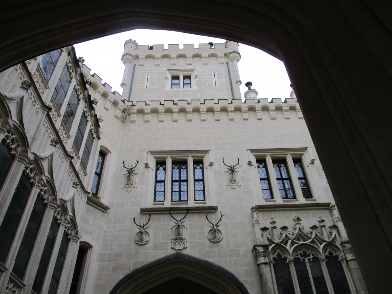お城は13世紀に建てられた後、何度か改築されて、現在の建物は19世紀に入ってから内部はゴシック様式に統一されましたが、高い塔や小塔、鋸壁をふんだんに使った外観などは中世の騎士の城を思わせます。