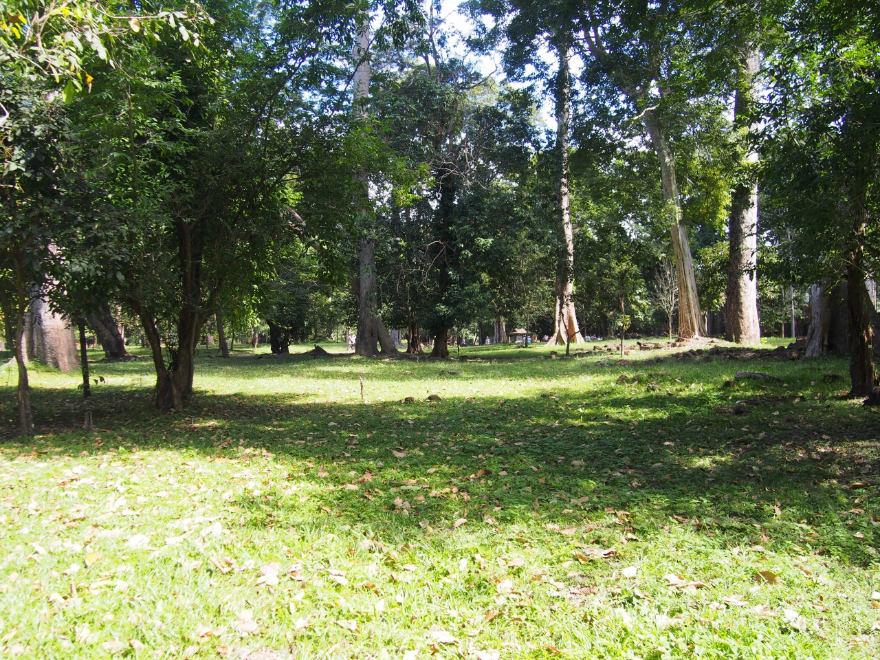 アンコールトムの北側のピミヤナカス、パプオーンの遺跡のすぐ近くに王宮はありました。王宮は王族の居住地なので居住性の高い木造建築であったので、現在は残っていません。その場所は木々が生えた緑地になっています。イメージを膨らませて歩いてみるしかありません。