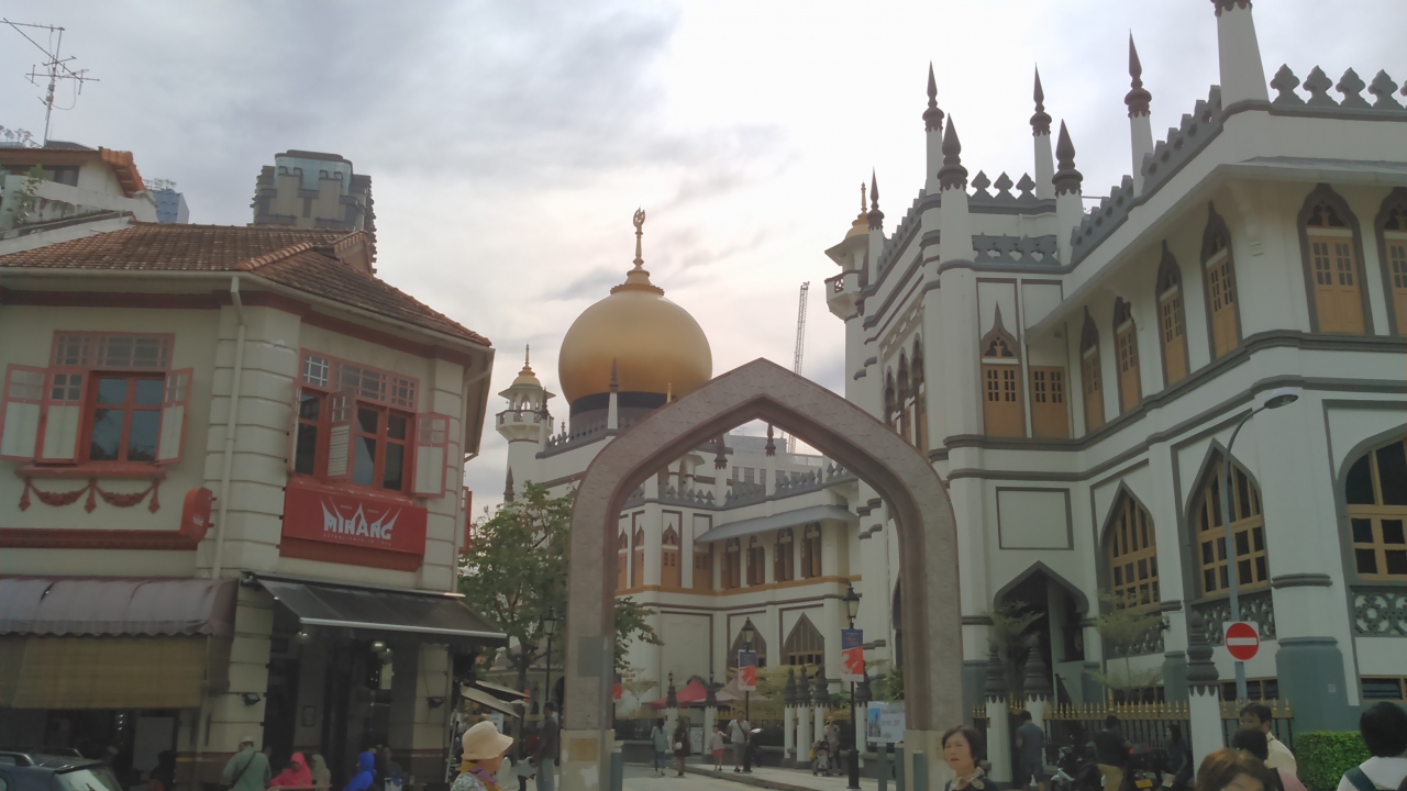 ツアーで訪問しました。シンガポール最大の金色のモスクです。金色の玉ねぎの姿が遠くからでも目を引きます。アラブストリートのエリアシンボルです。昼間、複数の男性が身を清めている姿を見ることができました。イスラム信者の敬虔な姿が見られました。周辺には香水瓶などを売るお店もあります。