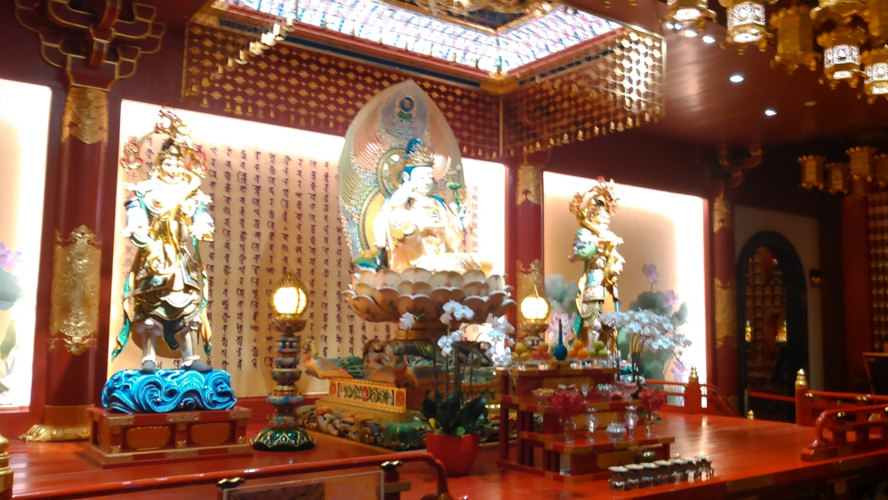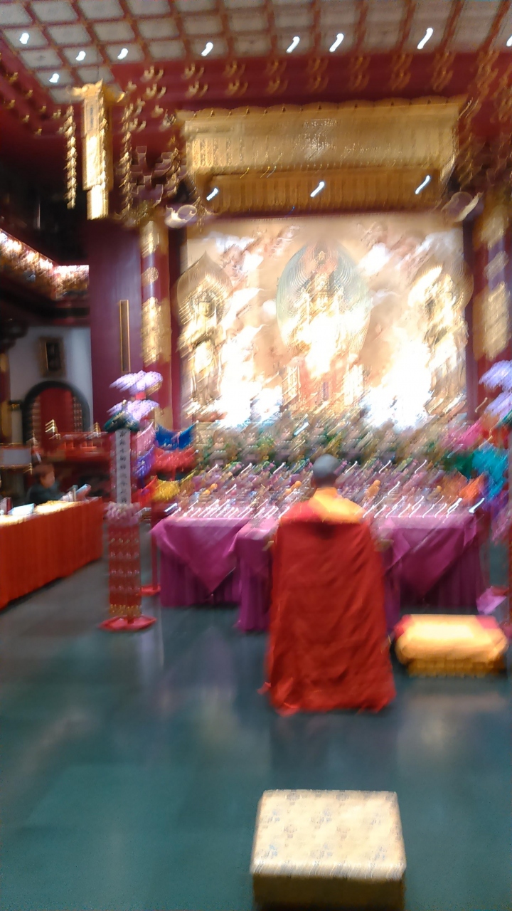 ツアーで訪問しました。初めに1本線香をあげ、お賽銭を入れて進みました。新しい建物で、中は黄金色に輝いています。大きな仏像・小さな仏像など数多く並んでいました。マイクでの僧侶の声に合わせて、多くの信者たちが唱えるお経が美しく、教会の讃美歌のようでした。