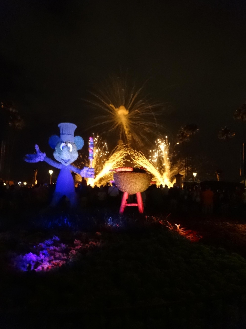 エプコットの夜を彩る花火ショーです。ステイ先からも見えました。出遅れたのでラグーン沿いのベスポジにはいけませんでしたが、花火なのでどこで見ても美しいです。結構長いです。けど、この日は疲れていたのでこのころにはヘロヘロでした。