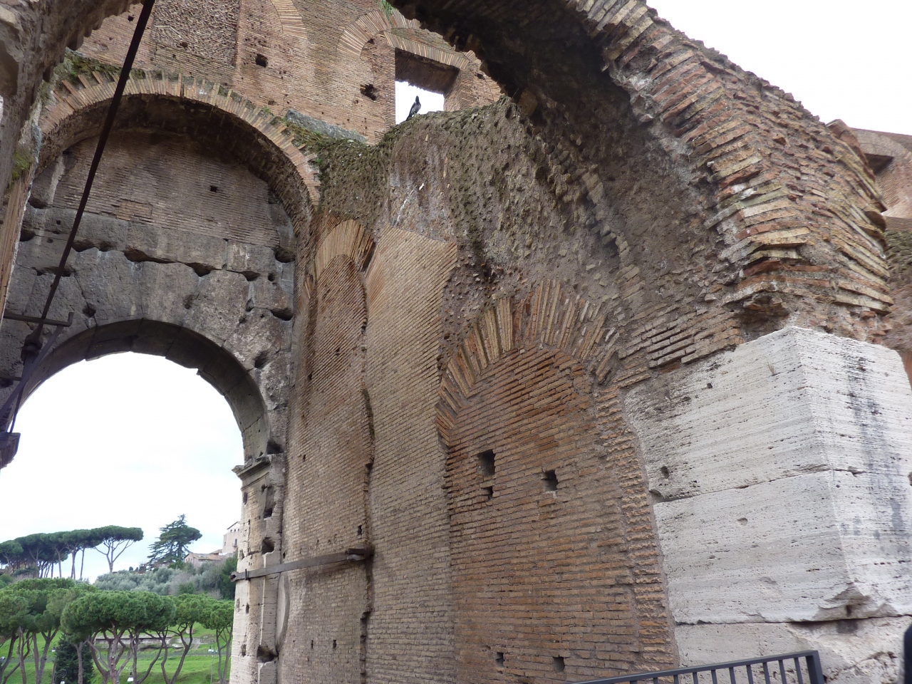 ローマと言えば最初に揚げられる観光名所がコロッセオです。近づいて見るとその大きさに圧倒されます。入場後、外周通路を歩き、壁に開けられた穴を見てながら約半周廻ってから内部の階段を昇りスタジアム内部を見下ろす位置に出ます。地下の構造を目にして、ここでもう一度その大きさに目を奪われます。