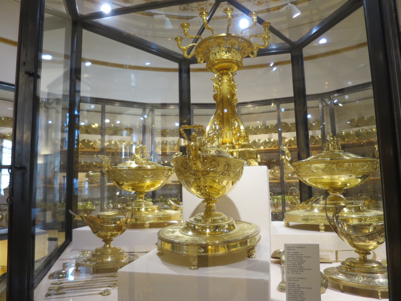 シシィ博物館は、金の食器、銀の食器、色鮮やかな皿、中国文化の影響を受けた食器、などがある。またシシィを出ると、直ぐとなりに皇帝の居室博物館がある。(中でつながっている)