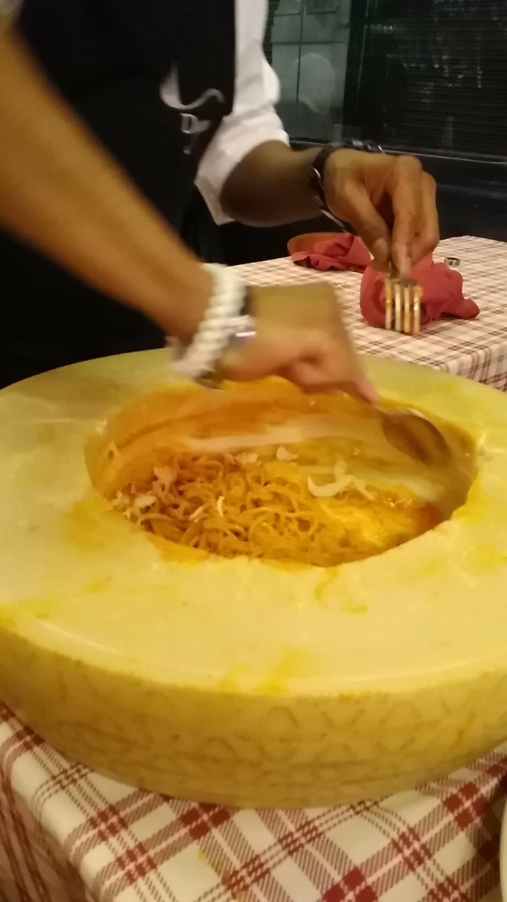 チーズの器でパスタを混ぜているときは、(ちゃんと断って)動画も撮らせてもらいました。