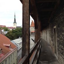 城壁があるとつい歩いてみたくなります。セーターがたくさん売っている壁の入り口から上りました。入口で料金を支払います。城壁から見る街はまた一味違ったように見えました。少し高い塔に上がると、城壁にかかるオレンジの屋根が綺麗に見えました。