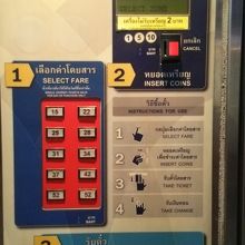 1回券を購入、小銭しか使えないので事前に用意が必要です。切符の購入はそれほど難しくはありません。タイ語表示なのでEnglishをタッチして画面を変えて目的地の駅名に触れると料金が表示されます。時刻表などはありませんが、電車の運転間隔は時間帯にもよるでしょうが夕方は5分位でした。