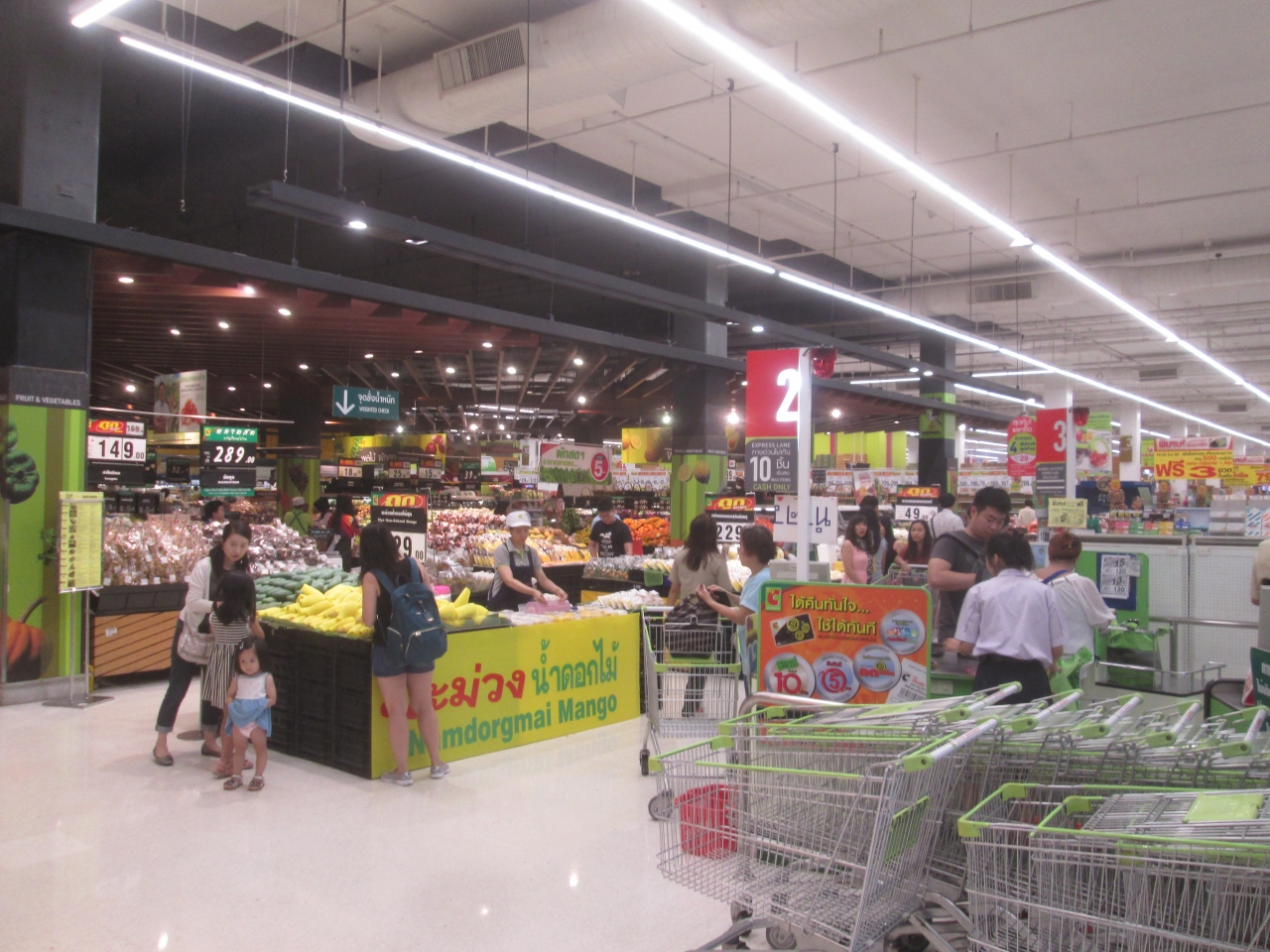 このショッピングセンターには大抵の食料品、生活用品は置いてあり、何でも揃っています。タイでしか購入できない調味料類など、どれにしようか迷うぐらいたくさんありました。お土産になりそうな真空パックや乾麺のタイ料理がありました。