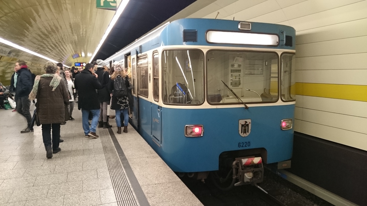 1972年に開催されたミュンヘンオリンピックにあわせて1971年10月に開業。8路線ありますが、7号線と8号線は混雑時のみの運転なので、実質的には6路線あります。6つの路線が3つペアになって運行されており、別々の始端駅を出た2本の路線が、ミュンヘン中心部で合流して、再び枝分かれして別々の終端駅に到着します。このため、ホームの案内や車両の表示を確認してから乗る必要があります。運転間隔はだいたい5分置き。列車は東京なら銀座線、丸ノ内線、大阪なら御堂筋線のように第3軌条方式で、車両はタイプA、B、Cとありますが、同じ色。東京のように、路線のラインが車両に反映されているわけではありません。車内はクロスシートで、タイプCのみ車両間の移動ができ、タイプA、Bでは、車端が半個室のような感じになっています。タイプA、Bの扉は半自動で、自分で開けます。これは始めて乗るときには戸惑うかと知れません(パリの地下鉄と同じタイプ)。Sバーンとチケットが共通で、ドイツの他の地域と同様、改札口はありませんが、頻繁に車内検札があり、チケットを持っていないと高い罰金を支払わなくてはなりません。ミュンヘンの観光地は1ゾーンに集中しており、地下鉄を上手く使えば、気軽に観光ができます。