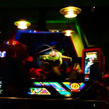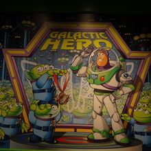 マジキンにあるシューティングゲームです。東京にもあります。こういうのはホントへたで全然いいスコアだせません。でみスペースレンジャーになった気分で楽しいです。やっぱりバズはかっこいいですね。出口付近ではバスのキャラグリも。