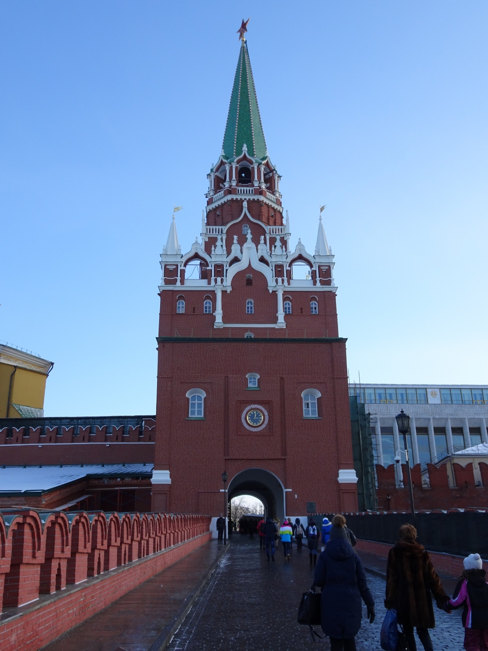クレムリンの中でも最も高い塔で、真っ赤で美しかったです。そして塔の先端には星の飾りがありました。クレムリンへ入るには、ここを通り抜けて中に入ります。まさに入口にあたる場所で、入ってすぐ圧倒されたという感じです。