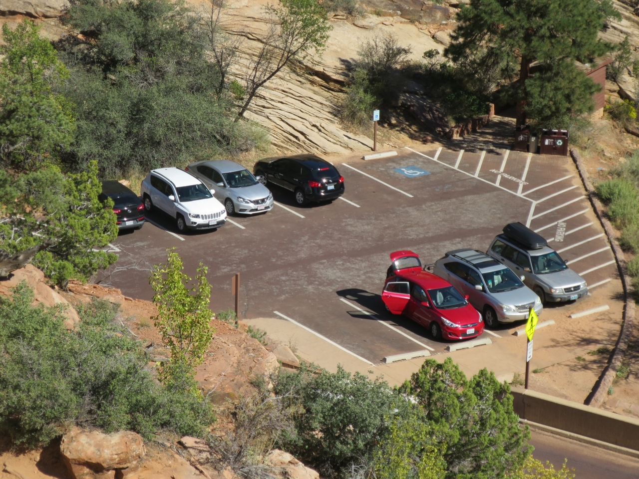 初心者でも簡単に登れるトレイルですから、ザイオンに来たなら必ず訪れたい所ですが、問題は駐車場の確保です。