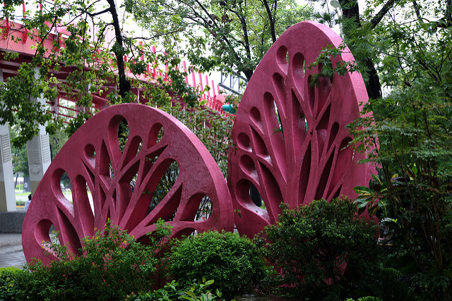 最近は、「台湾最大の同人誌即売会・Fancy Frontierのコスプレ撮影スペース」としても使われている公園。「レトロ調の調度品」「岩山と中華風の橋」「近代芸術的なモニュメント」など、ポートレート撮影にもお誂え向きなモニュメントが多数あります。面積も広大といえるだけのものがあり、撮影のみならず、散策やランニングなどで「観て楽しむ」という楽しみ方もできる…そんな公園です。