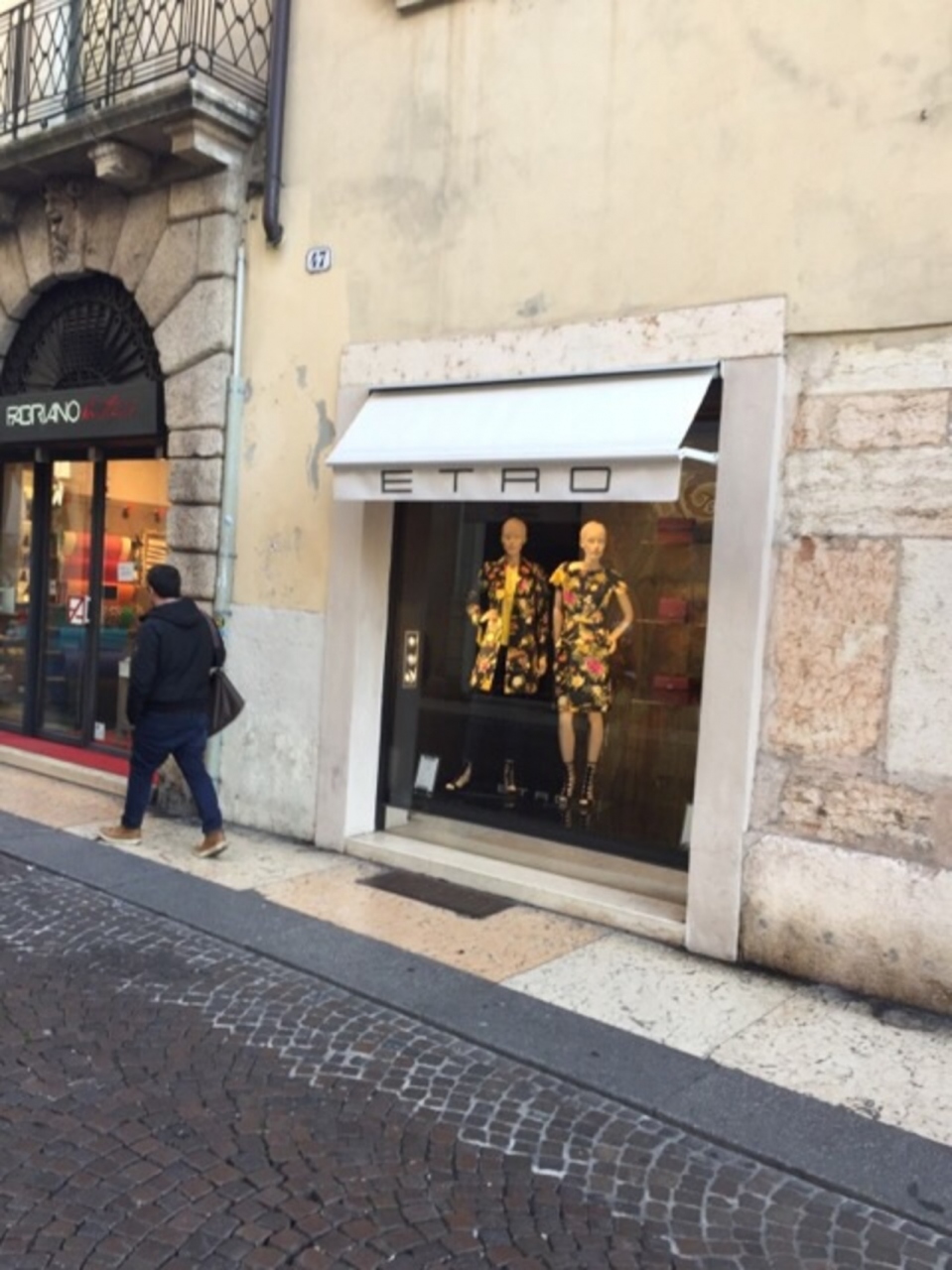 イタリアのファッションで、ハイブランドでお馴染みなエトロですが、旧市街の中にあるため、外観は歴史的な建築のような落ち着いた佇まいです。