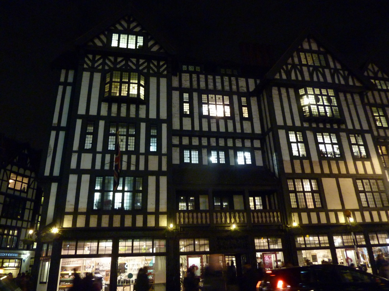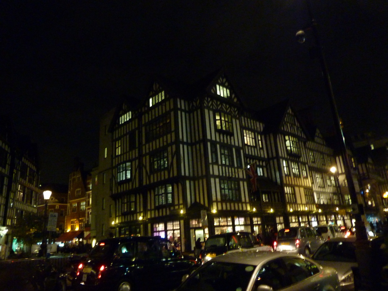 オックスフォードサーカスからリージェント通りを2ブロック、ピカデリーサーカスに向けて歩き、左(北側)に曲がるとすぐ木組みのチェダー様式の建物が目に入ります。外観は木の格子縞を組み合わせた感じで、中に入ると木造建築であることがわかります。床面も磨き上げた板張で、ところどころにある吹き抜けも板で囲まれています。エレベーターも内部は木製で、輝くほど磨き上げられています。ただ動作は遅く作動時間は少し長く感じますが、高級感のある乗り物と思えば楽しい時間を過ごせます。