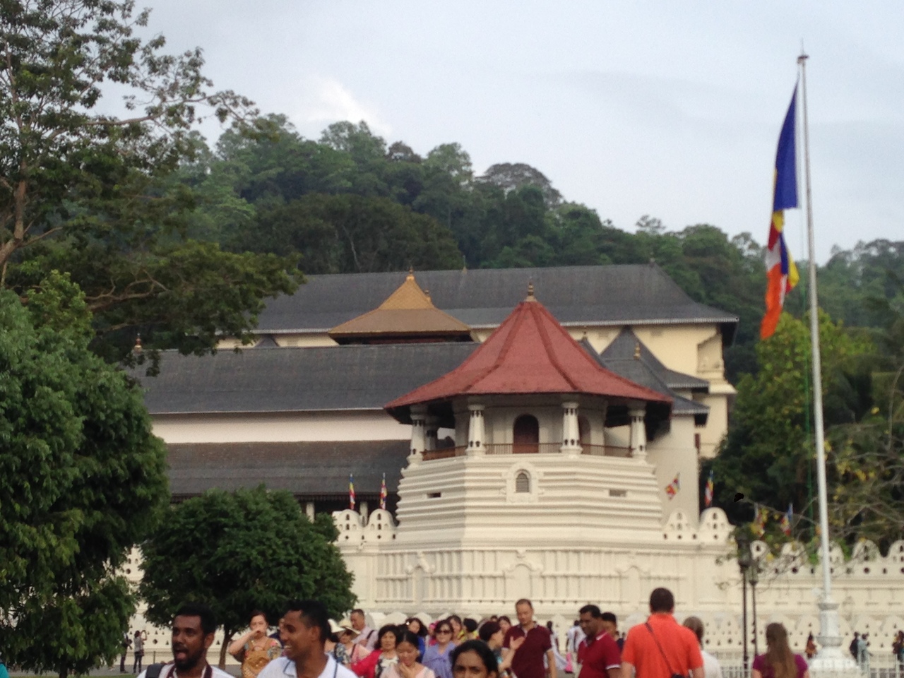 たくさんのスリランカの人が白い服に裸足でお詣りしていて、ここが彼らにとっての聖地であることと強い信仰の気持ちを感じることができました。構内は厳かな雰囲気です。スリランカ流にハスの花盛をお供えして願い事をしました。