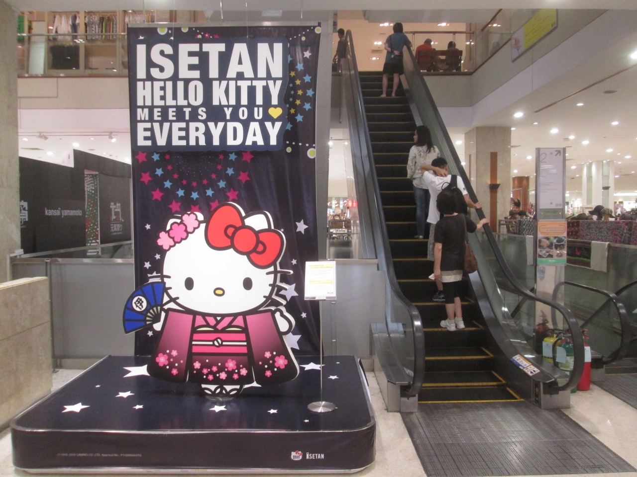 マスコットキャラクターがキティーちゃんで、1階エントランスのエスカレーター付近では季節に応じた衣装を着たキティーちゃんが出迎えてくれます。七夕の時期ということで、1階のキティーちゃんは浴衣を着ていました。