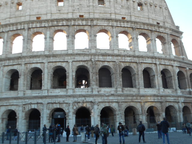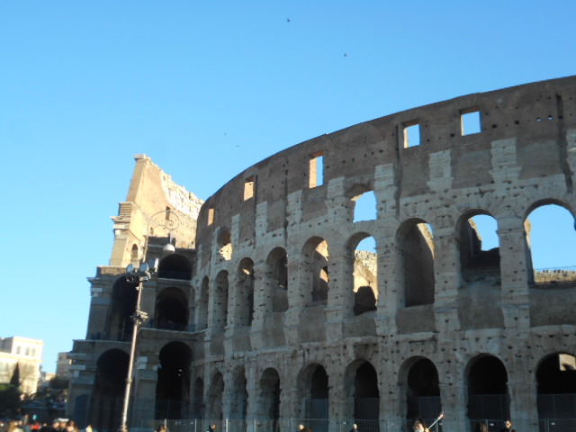 去年の2月以来のローマ滞在中です。今日は先ず、コロツセオ観光をしました。コロツセオに9時A.Mに着いたので、土曜日にも係わらず、長蛇の列にあわなくて、すんなり入場できました。コロツセオも壁が崩れている箇所も在り、補修しているようです。ローマの素晴らしい世界遺産の一つです。