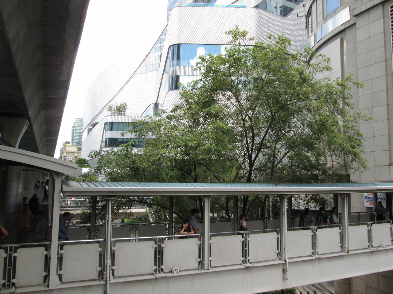 BTSプルンチット駅直結で、雨に濡れることなく着けます。プルンチット駅5番出口に出ると、駅のサインに「セントラル・エンバシー」という案内がありました。やがて、大きな目立つ建物がスカイウォークから見えてきます。