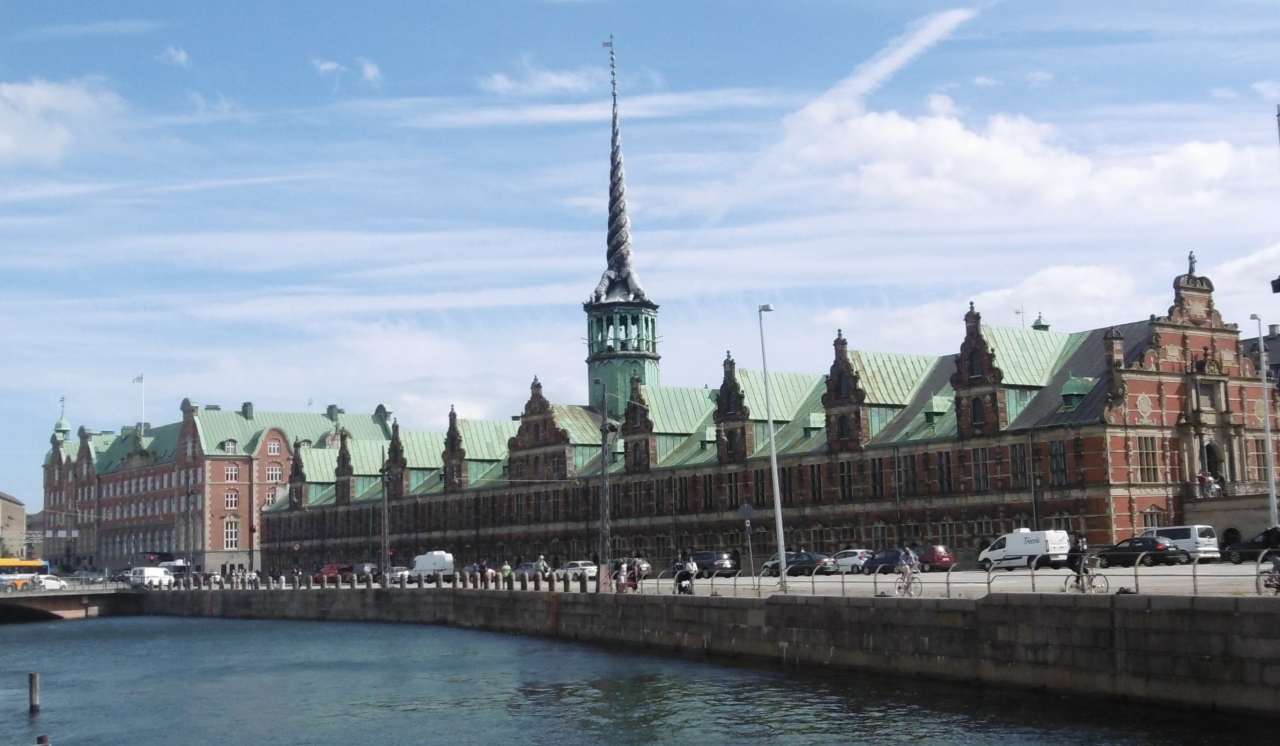 クリスチャンボー城の近くに何かがぐるぐる巻きになった像のあるユニークな塔があるのがこの旧証券取引所の建物です。初めは巻き貝のように見えましたが、ドラゴンだそうです。クリスチャンボー城の近くにあるので、城の見学後にこの近くに行って見るべきだと思います。