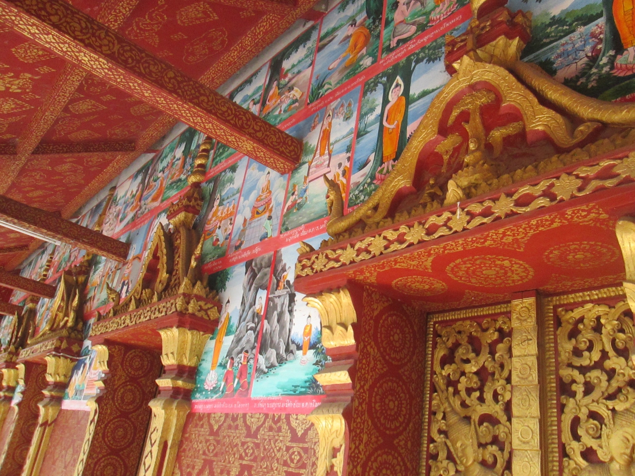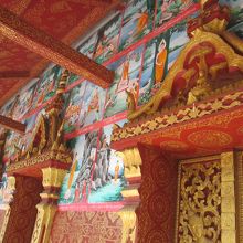 ここはファーグム王が建立したとされるお寺です。仏教の世界を描いた壁画がとても美しく、見ごたえがあります。現在のお寺は1919年に再建されたものだそうです。高さは6メートルにも及びます。入場料は無料でした。