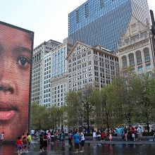クラウン・ファウンテンは、さまざまな人の顔が映し出されて、ときどき口から水が噴き出る仕掛け。子供たちが水遊びに興じていました。