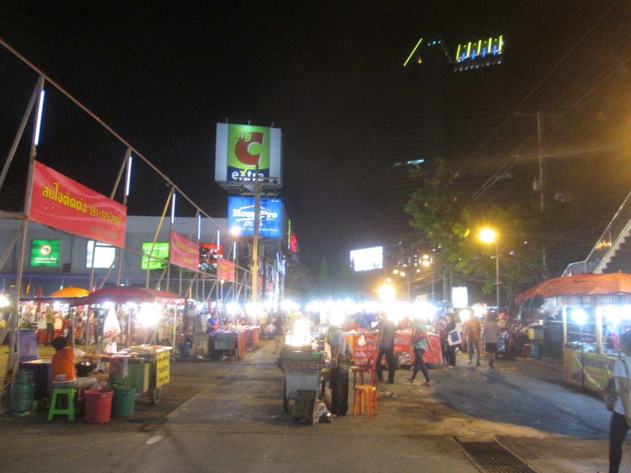 土曜日の夜に訪問しました。バンコクでは土曜日も勤務という企業が多いので、彼らにとっては花土のようで、会社が終わったら屋台で飲食、そして夜市で買い物というのがライフスタイルのようです。かなり規模の大きい夜市でした。