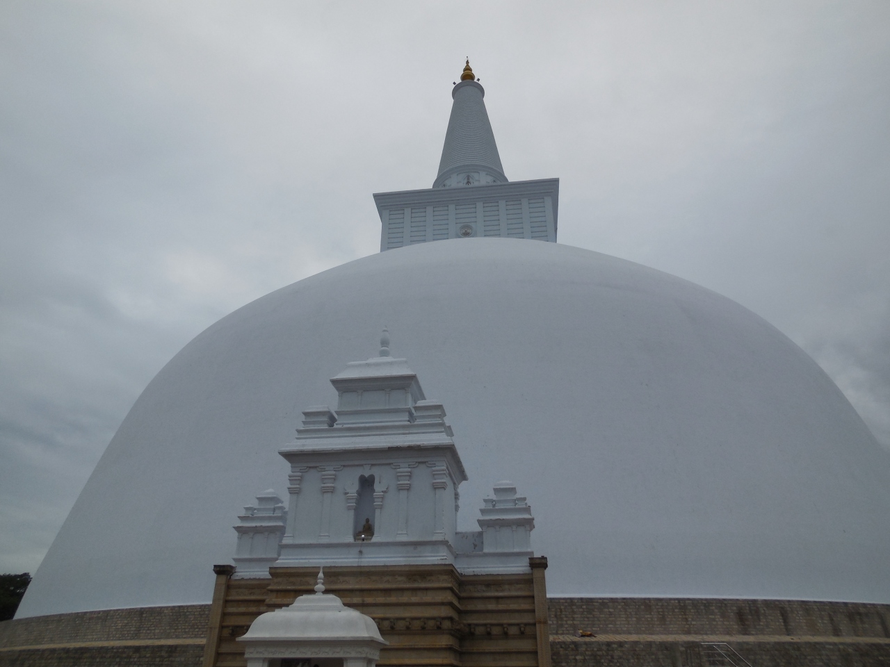 だだっ広い平原みたいな公園の真ん中に、レンガでドーム状に組まれ高さ55メートルを誇ります。そのレンガの表面を真っ白な漆喰で塗り固められたばかりで強烈な太陽光を反射してまばゆく感じます。紀元前2世紀にドゥッタガーマニー王により建立され仏塔で、スリランカの人々に大切に護られてきています。