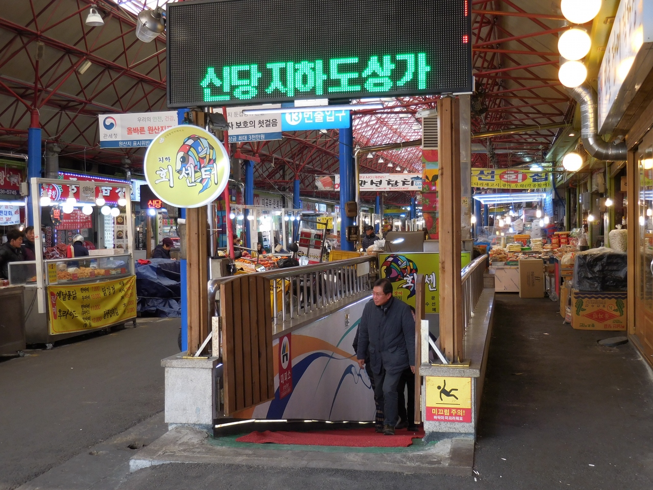 地下鉄新堂駅から徒歩すぐの中央市場地下にあります。