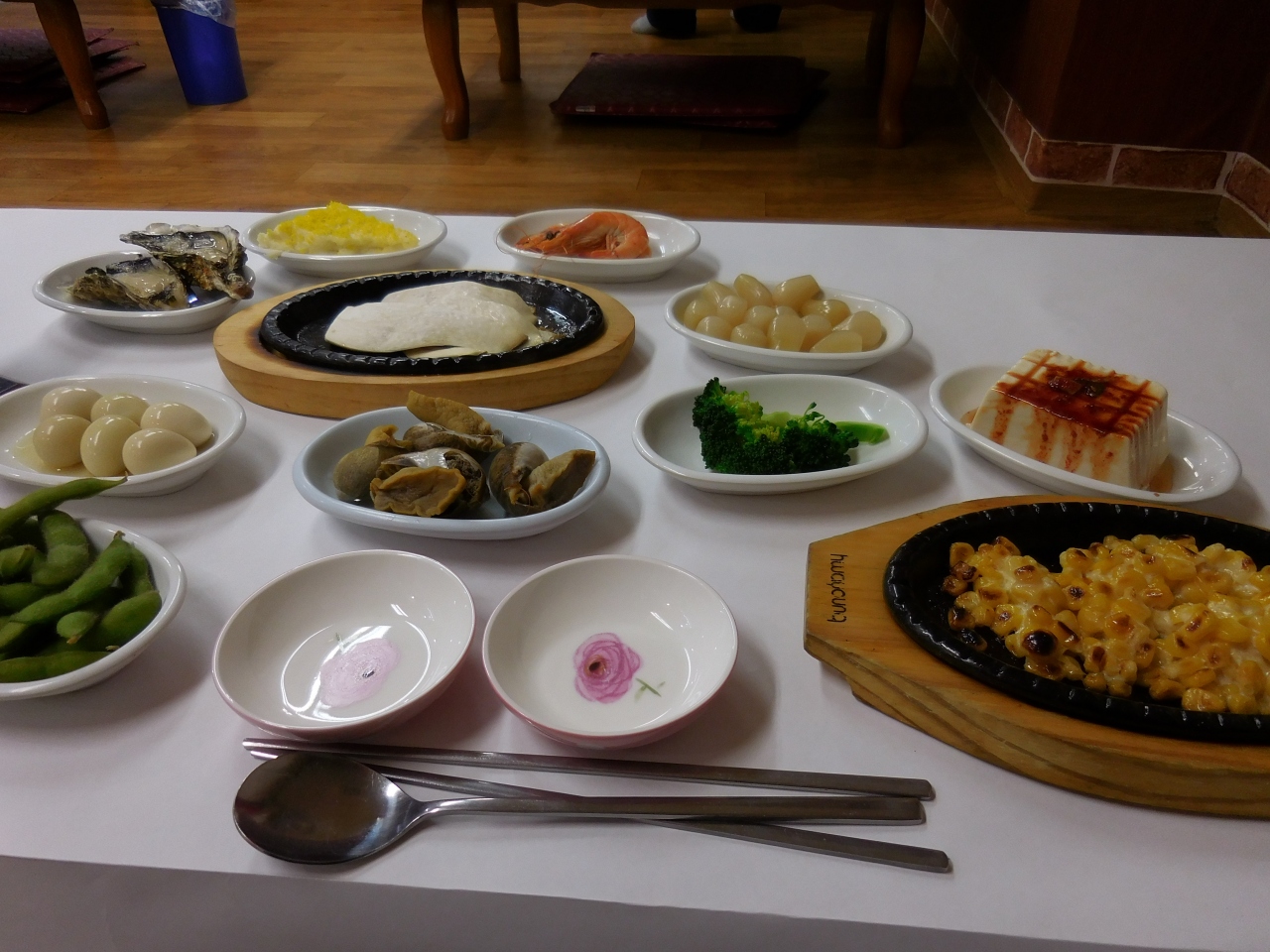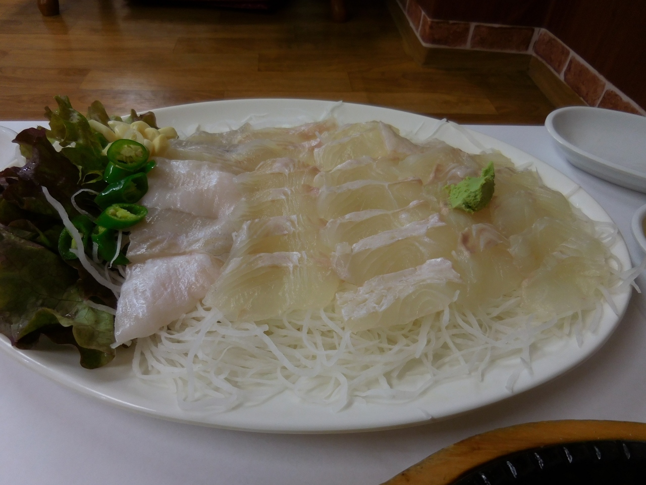 この店は、魚の値段にそれ以外の料理も含まれた設定になっていて、私の時はヒラメを1匹4万Wで注文しました。ここには他にも同様の料理店が多くあって、どこも同じような料金システムのようです。また、飲み物は別料金だと思います。