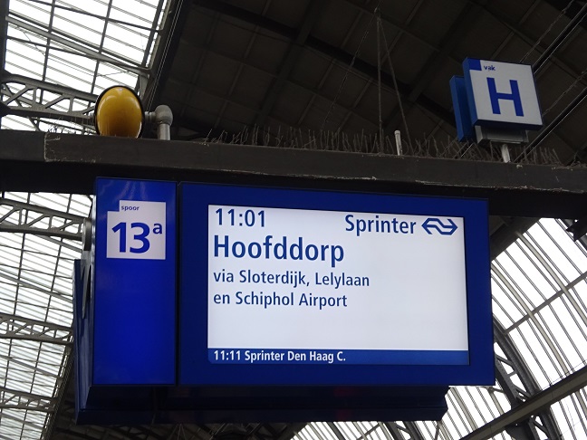ただ行先はたくさんあるので乗り間違えないように。12年前行く方向は合っていたけど、AMS中央駅を乗り過ごし、3つくらい先の駅まで行って慌てたことがありました。以前はなかった社内モニターが次の駅、その次の駅など明示しているのでわかりやすい。アナウンス(英語とオランダ語)も聞き取りやすいです。以前に比べるとよくなりました。