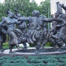 トビリシの市街地の中心にあるバラタシヴィリ通りに、この「輪になって踊る人々の像」はあります。バラタシヴィリ通りの歩道にはいくつかのこのようなオブジェ、像があります。なかなかおもしろいものもあり、センスの良いものもあるので、見ていて楽しいです。自由広場からトビリシ最古の教会のアンチスハティ教会への通り道でもあるので、見る機会も多いと思います。