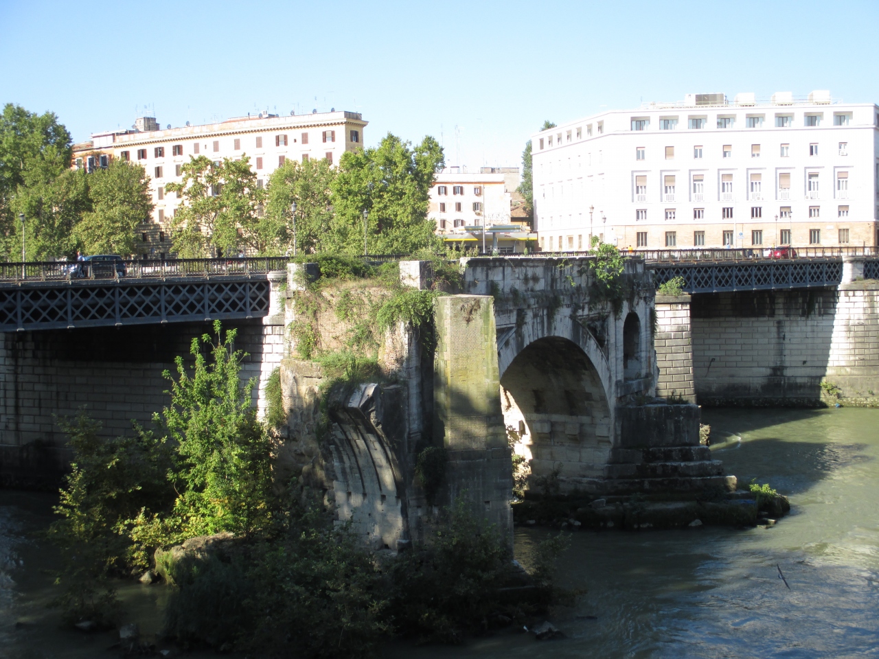 ローマの休日は、このテベレ川に沿って歩くというのもいいですよ。橋の形も色々で見ていて楽しいです。お勧めは、パラティーノ橋のとなりに、完全に朽ち果てた橋があって、これが何ともいい感じでした。この橋巡りが楽しかったです。