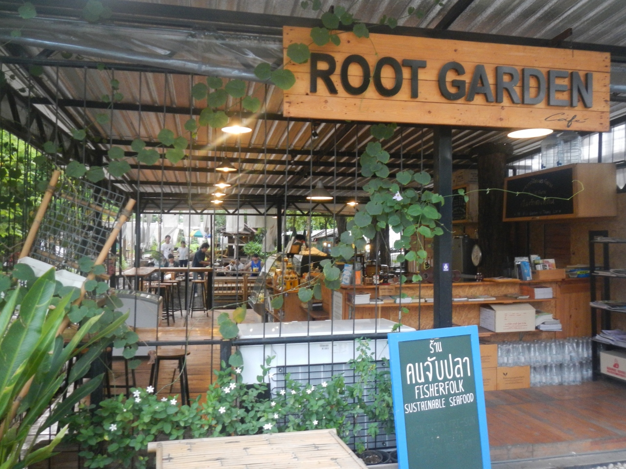 ソイトンローにあるオープンエアのカフェ。名前のとおり木の根がむき出しで、庭にあずまや風の建物があるだけで、エアコンなどないので昼間は日陰とファンはあるが、かなり暑かった。