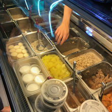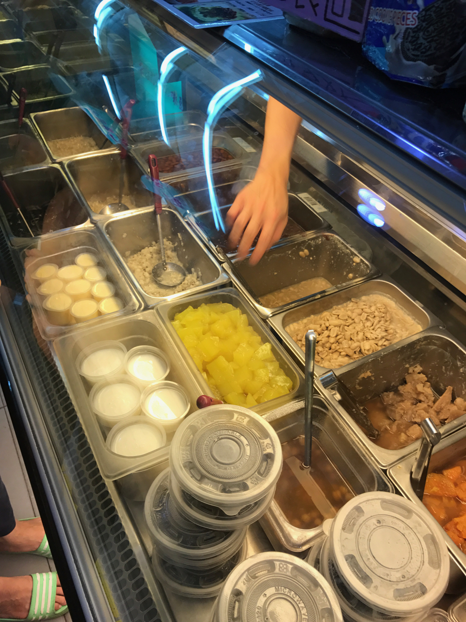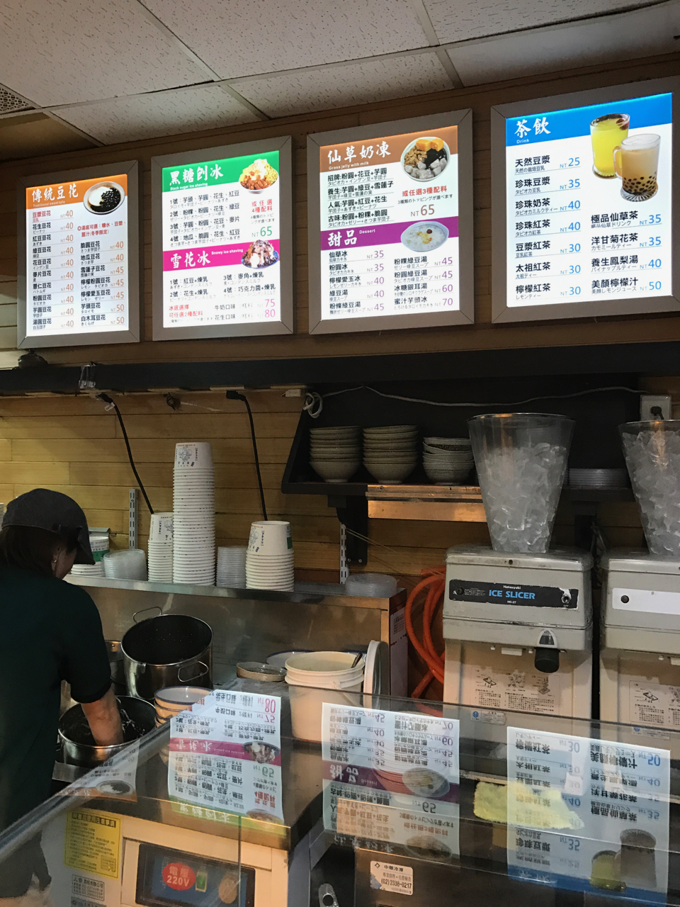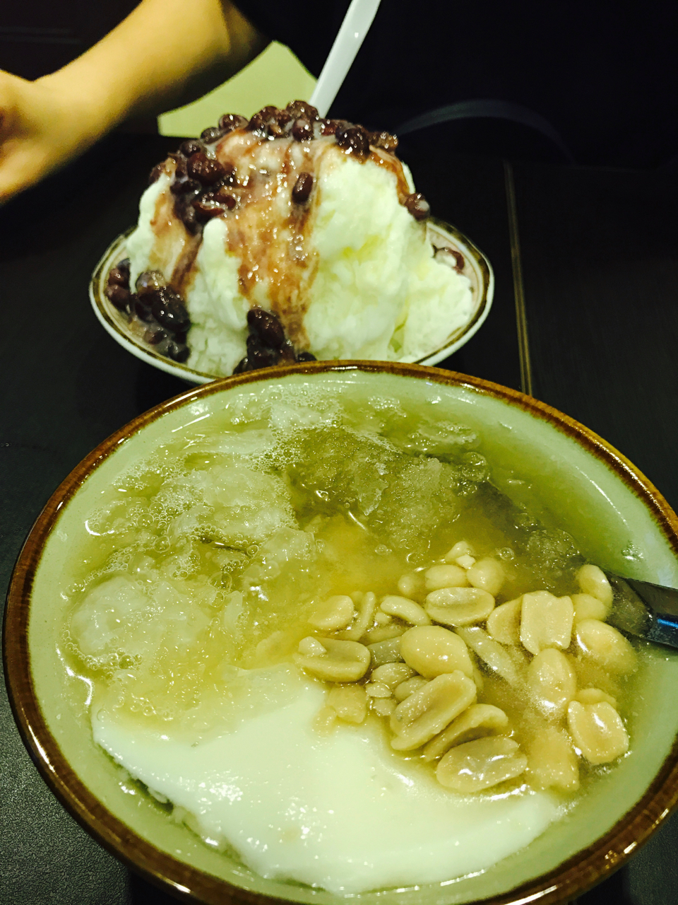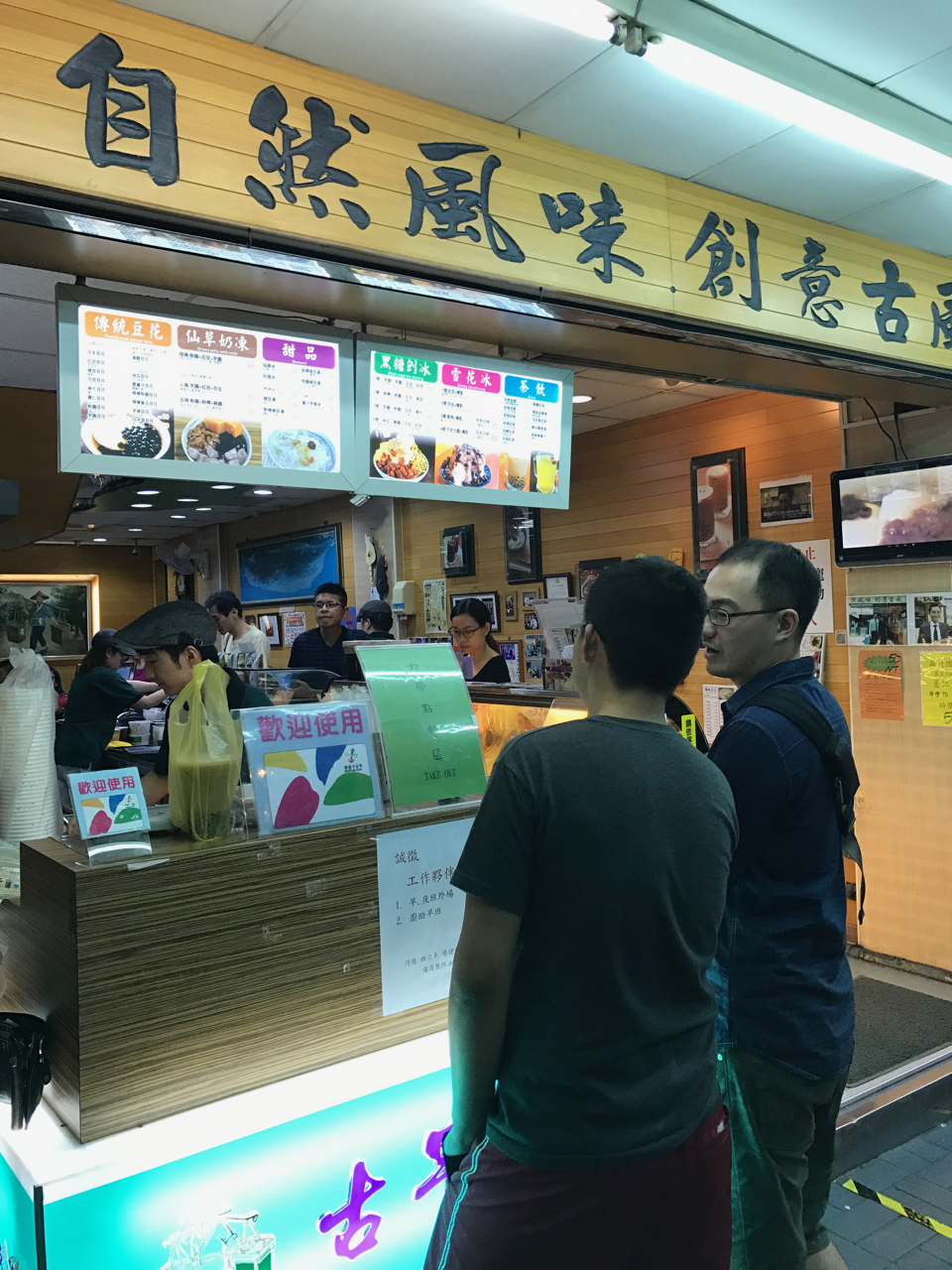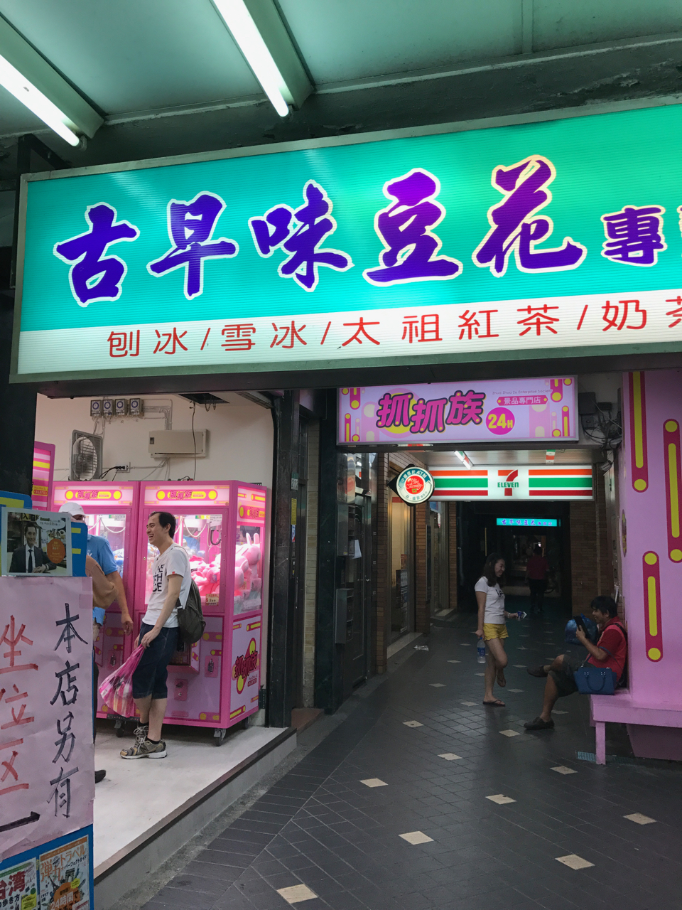 ゆでピーナッツのトッピングの豆花をいただきました。豆花自体は豆腐の柔らかいもの的な味なのですが、シロップとゆでたピーナッツの香ばしさがマッチしていてどんどん食べれてしまいます。友人は小豆のトッピングでした。お店から少し離れたところにイートインのスペースもあります。