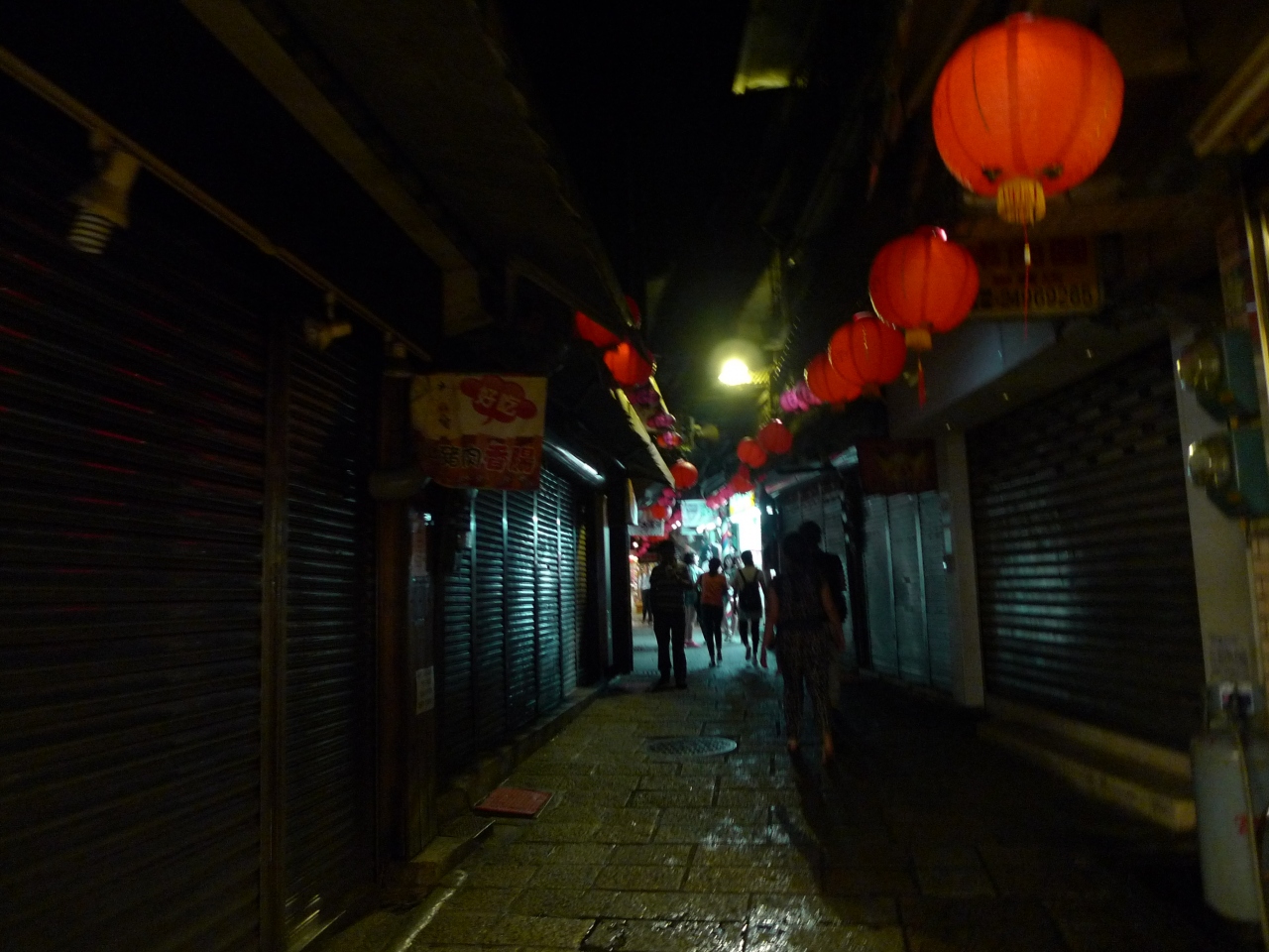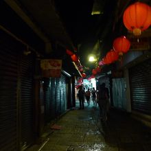 基山街は7時を過ぎるとシャッターを下ろした店が多くなる。