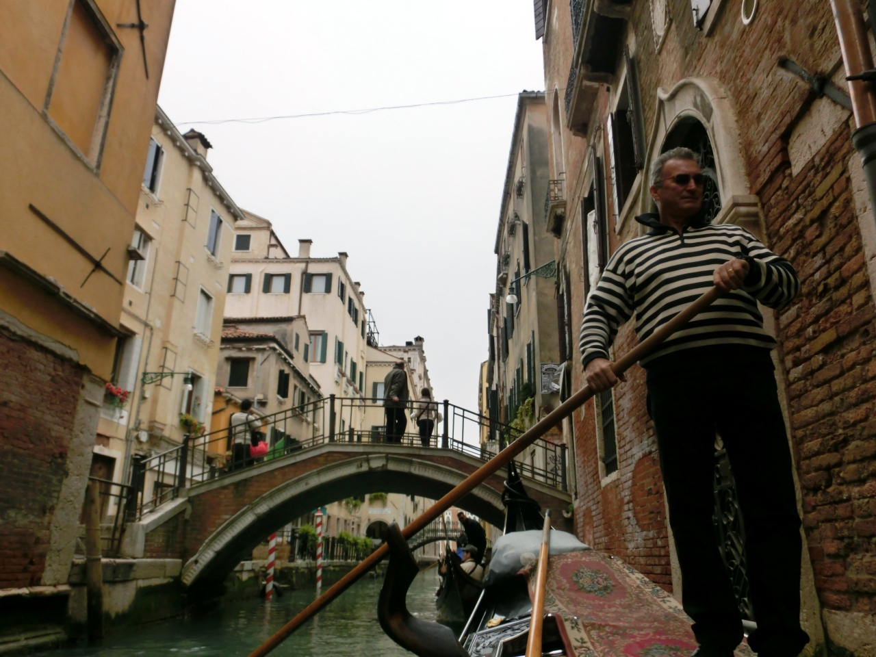 ベネチアのゴンドリエーレとしてイメージする太いボーダーのシャツにカンカン帽姿は拝めないだとうと思っていたら、私が乗ったゴンドラの船頭さんはボーダーシャツだったし、カンカン帽+セーラー襟のゴンドリエーレさんも見かけました。