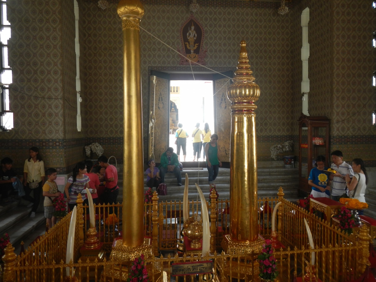 ラク・クアンというバンコクの中心となる柱が中に納められているお堂。願い事がかなうパワースポットとしてバンコク市民に信仰されているそうだ。お堂の中に入ってみると金色柱があり、大勢の人がお祈りしていた。またお堂とは別の建物でもお祈りをしている人がいた。私は旅の安全をお祈りした。