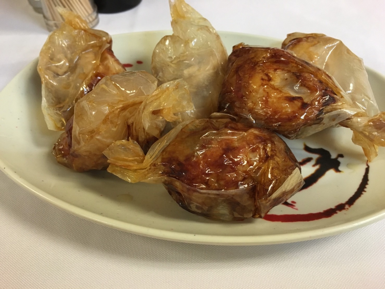 ネットで予約していきましたが、12時少し前に着くと1組しか先客はいませんでした。庶民的な店内に、田舎のホテルの宴会場で使うような円卓と椅子のセット(クロスをかけて椅子にもカバー)が並んでいて、ほとんどの席に予約の名前を置いていました。店内はノーミュージックでなかなかシュールな感じです。