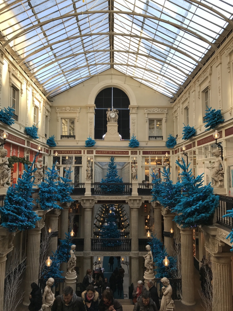 パッサージュでは珍しい3階建。中に入ると白基調の内装がとても明るく、ちょうどノエル(クリスマス)前だったので青いツリーがあちこちに飾ってあってとても美しかったです。外からは全くうかがい知れないので必ず奥まで入ってください。