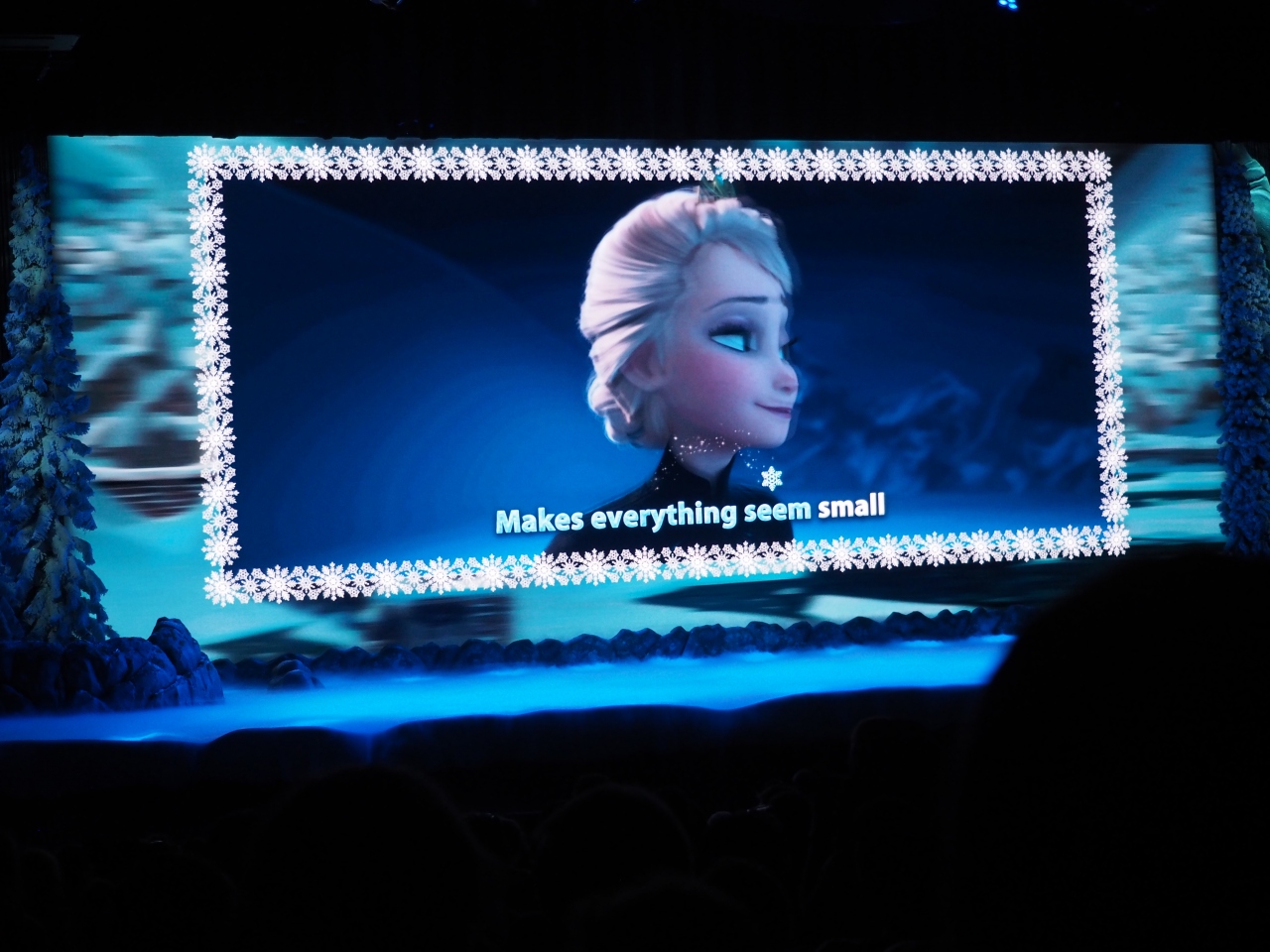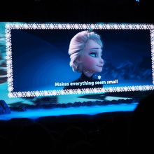 アナ雪の劇中歌を歌うショーですが、歌詞が出てくるのでありがたいです。