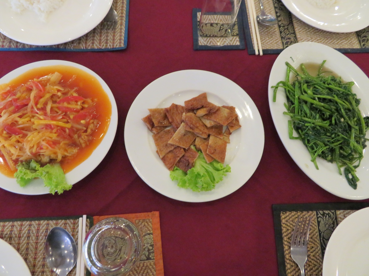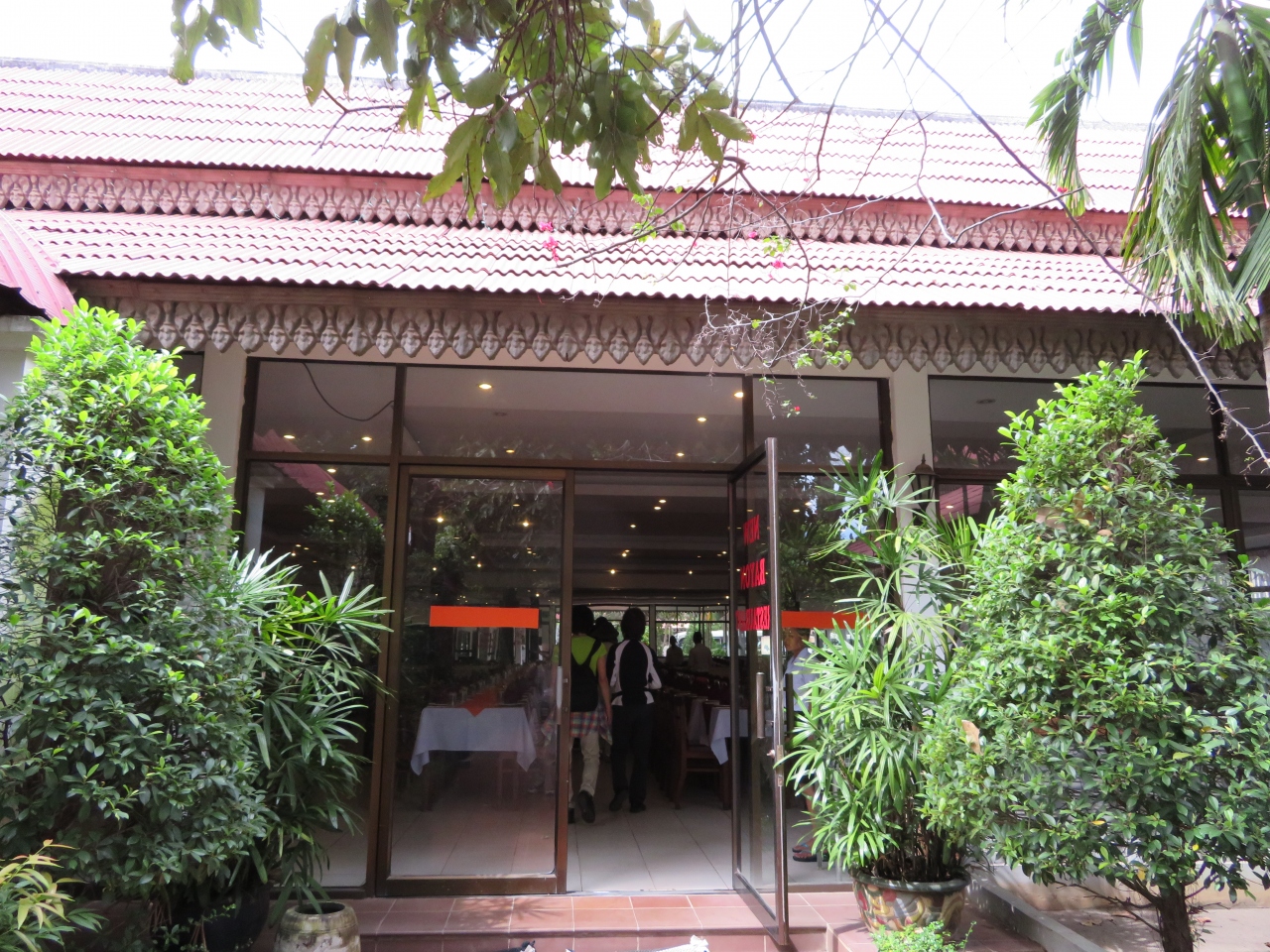 シェムリアップ市街にある大きなレストランです、日本人のツアーが良く利用するようです、われわれはクメール鍋の食事をしました、野菜や練り物などを鍋に入れて食べ、最後にご飯を入れておじやのようにして食べました、スタッフが来て料理してくれました、味はほぼ満足でした。