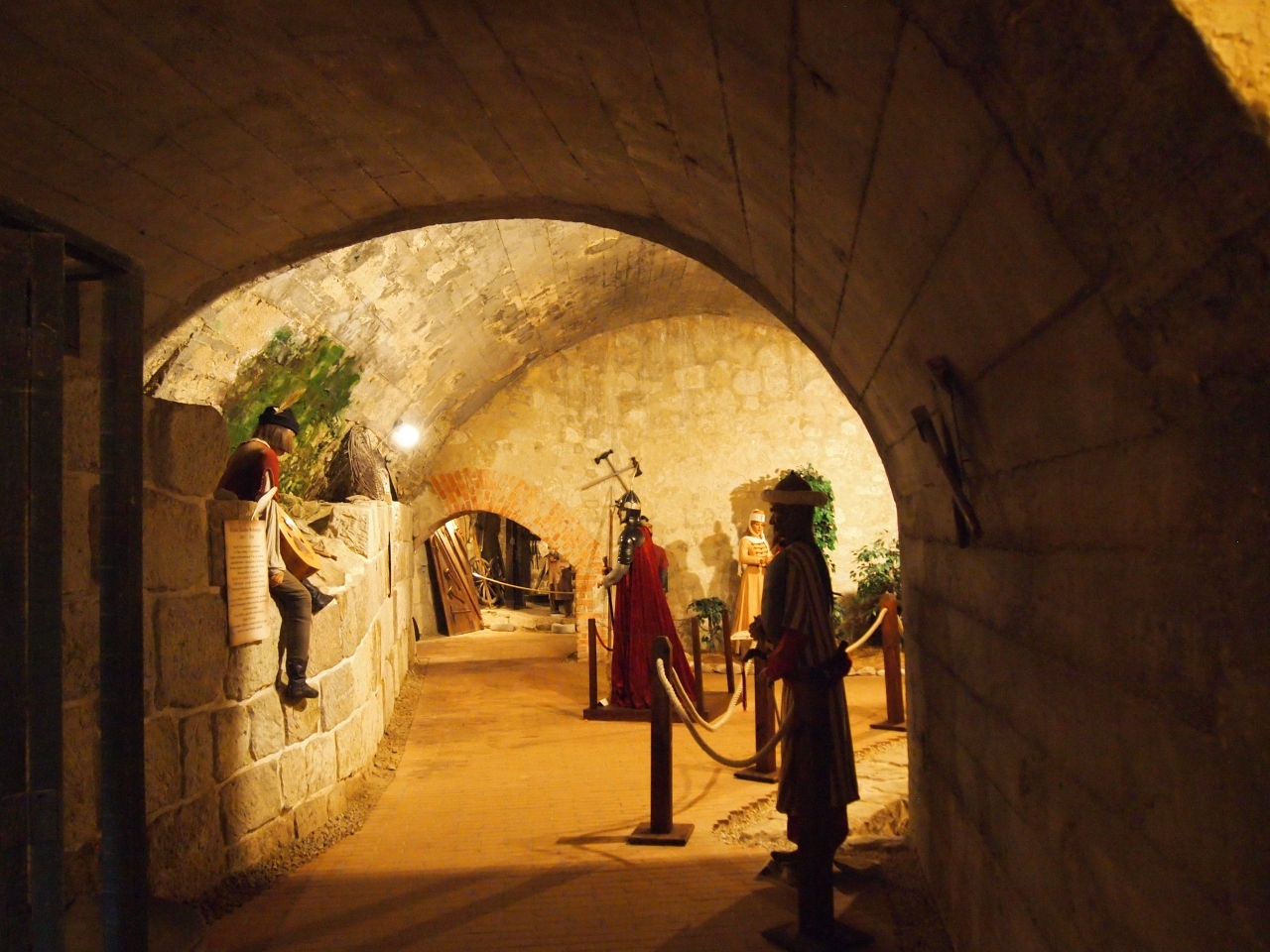 昔ながらの街並みがそのまま残るエゲルには近代的な高層ビルどころか、高い建物は大聖堂や教会ぐらいなので、丘に広がるエゲル城から十分に街全体が見渡せます。いわゆるお城の本体は残っていませんが、博物館施設を兼ねた司教館などが点在していて、入城のチケットに含まれたいくつかのスポットを巡ることができました。エゲル城そのもののオープンは朝8時、しかし博物館などの施設はその後10時から開くため、あまり早くに出向くと時間を持て余します。ちなみに小心者の自分には、ほかに訪問者ゼロだった蝋人形の館はとんでもなく恐ろしい空間でした。