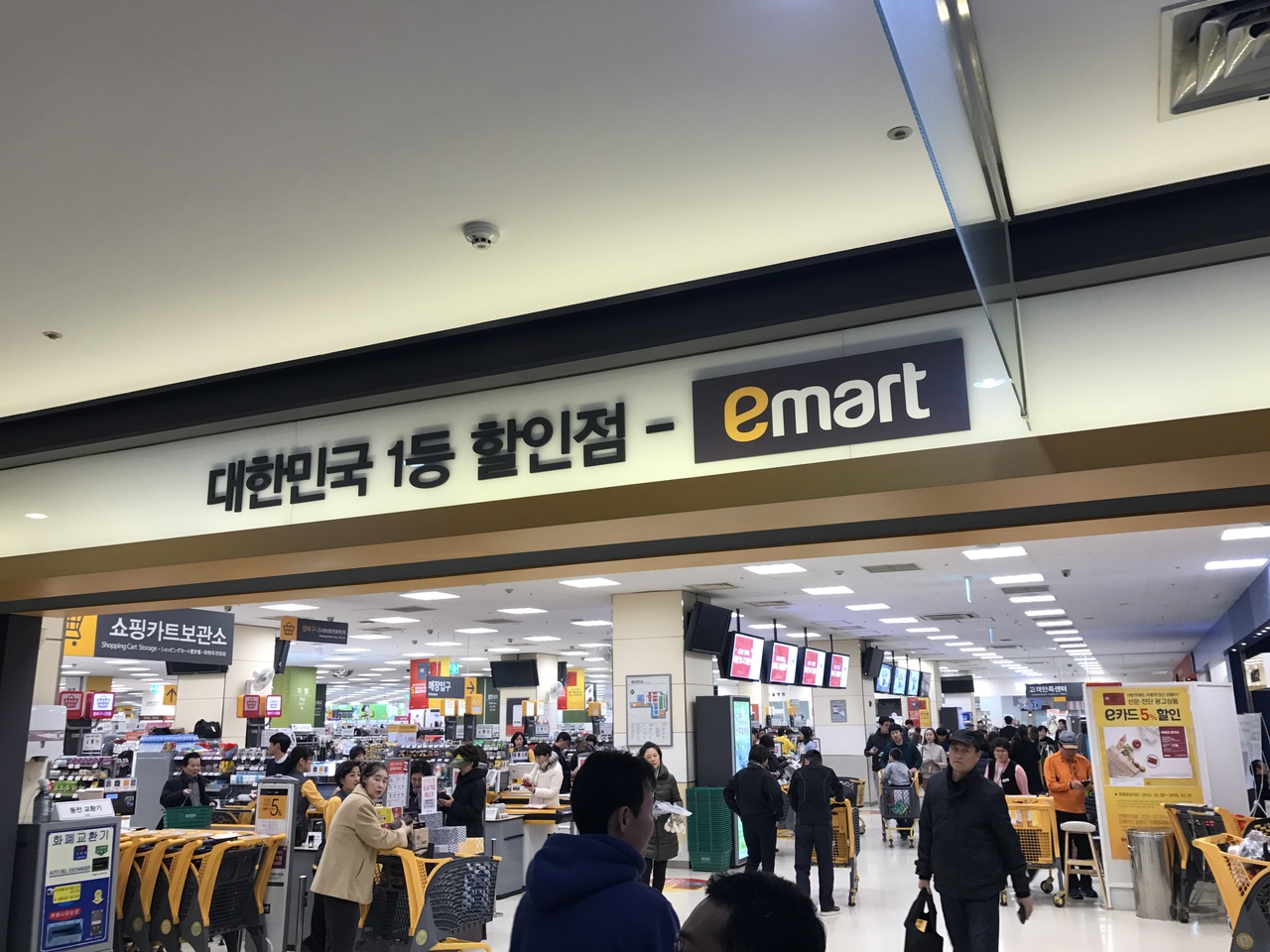 建大入口駅からすぐロッテデパートと並んであります。中には飲食店やイーマートなど買い物できるところがあります。ここのイーマート割と広くてスポーツ用品店なども入っています。惣菜などは結構ありましたが、