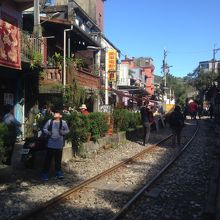 駅そばのお土産屋のそぐそばを電車が通る迫力満点の場所でもあります。
