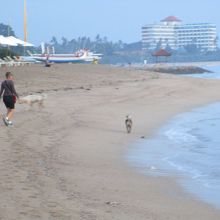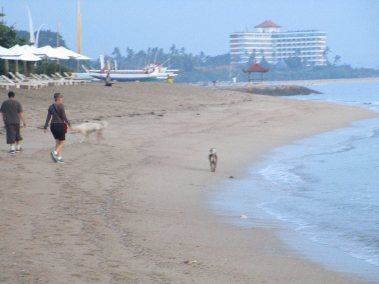 高級ホテルにはガードマンやフロントがいるので、ちょっと気がひけますが、日本人なのでスラマパギとあいさつすると通してくれます(ただし、一部ホテルには宿泊者以外ビーチへの通り抜け禁止の立て看板が出ているので、表示があるホテルは通過はやめておきました)。