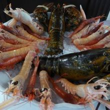 店内の中央には本日おすすめの新鮮魚介が並べられ、壮観。